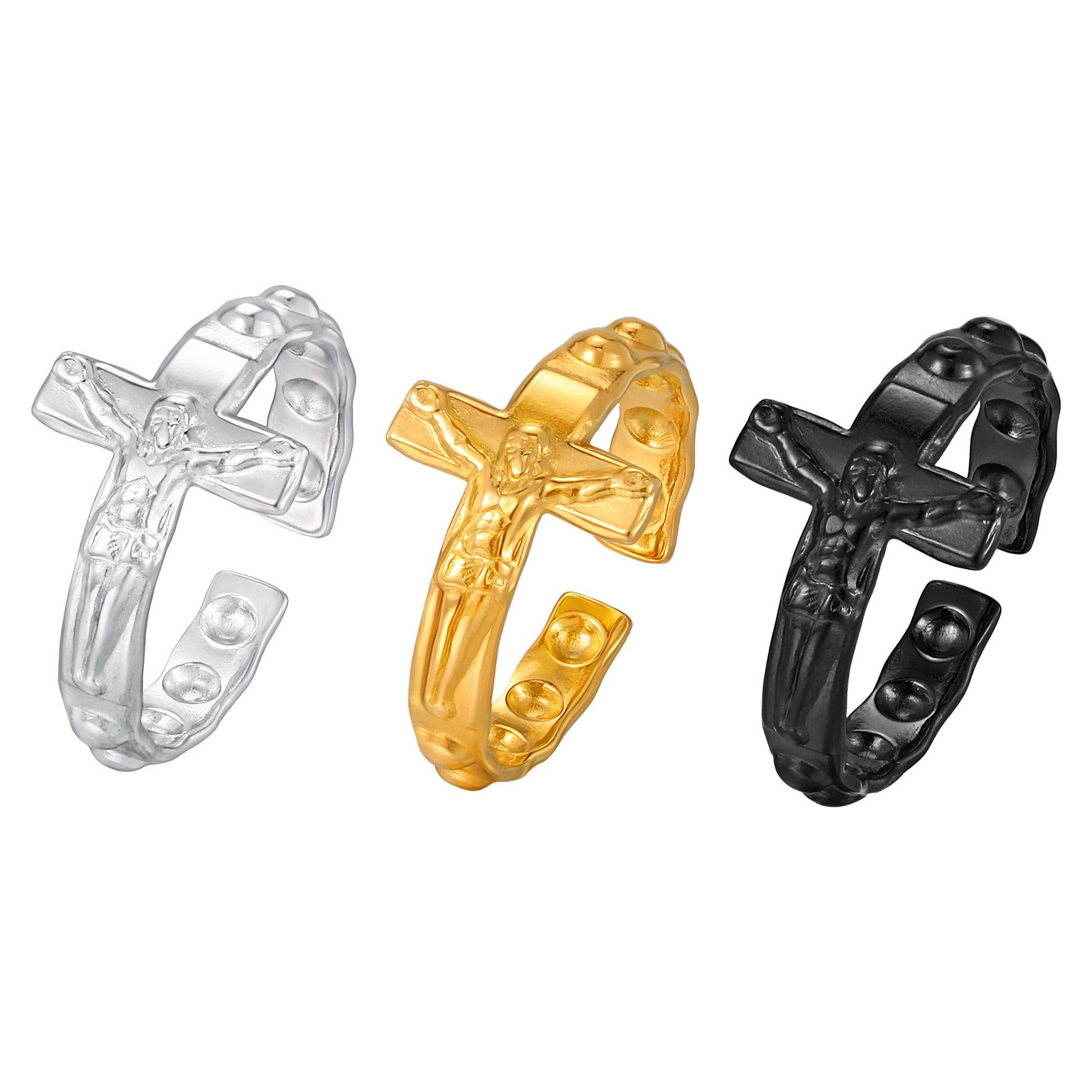 Kemstone Stainless Steel Cross Open Ring for Men Vintage RC-1073