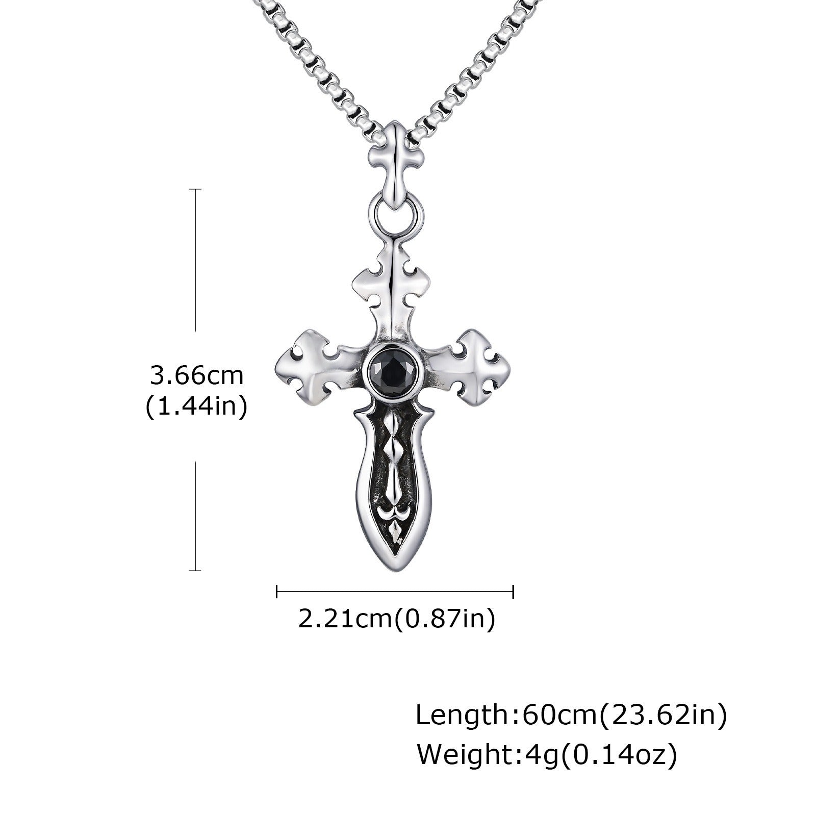 Make a statement with Kemstone’s stainless steel vintage cross pendant necklace. The sleek sword blade outline and black zircon inlay create a bold design with modern and vintage elements.