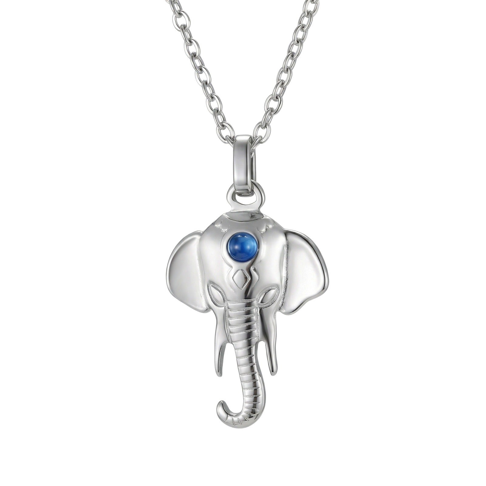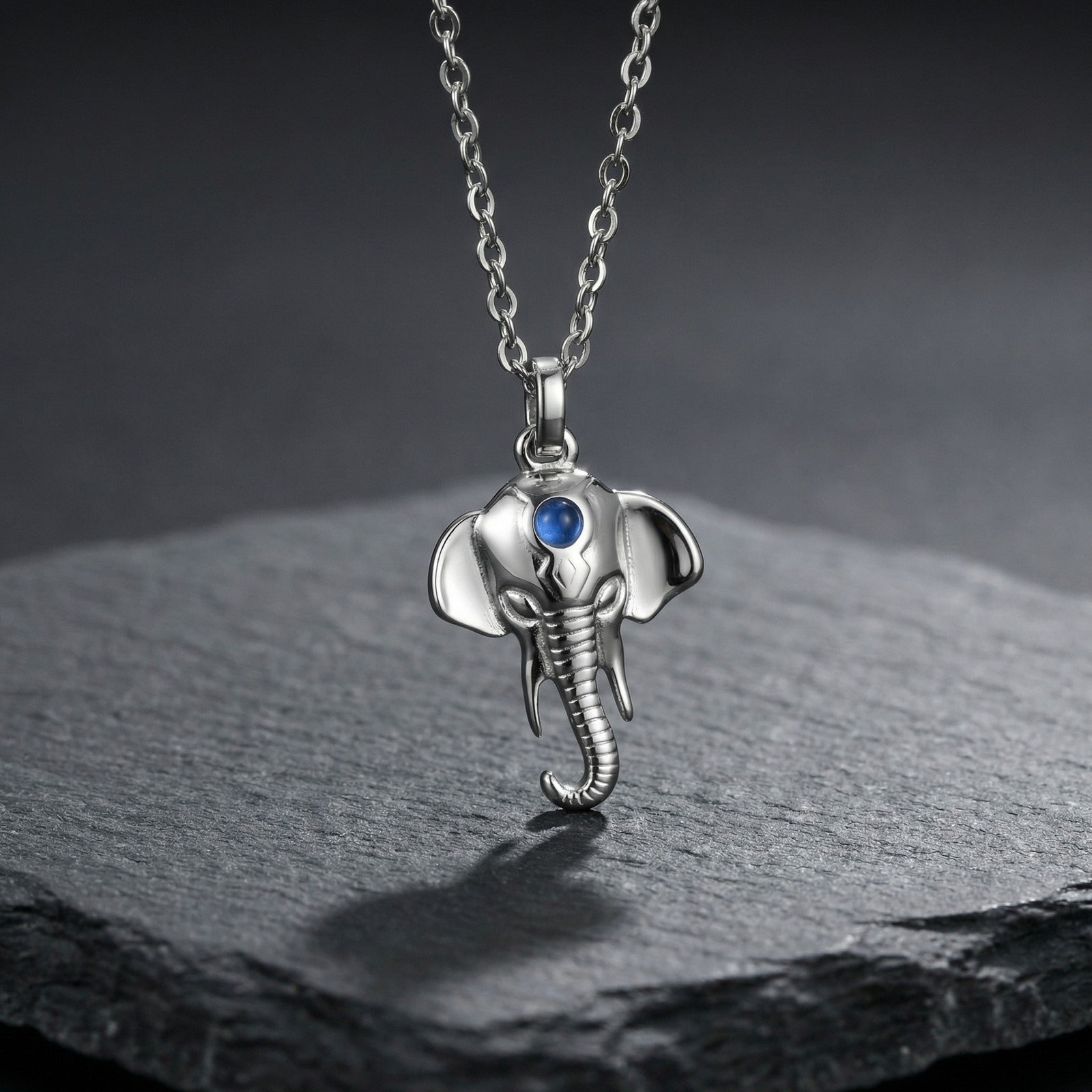 Wear this stainless steel elephant pendant necklace for men & women. With a centered blue accent, this necklace combines minimalist design with meaningful symbolism, perfect for everyday wear.