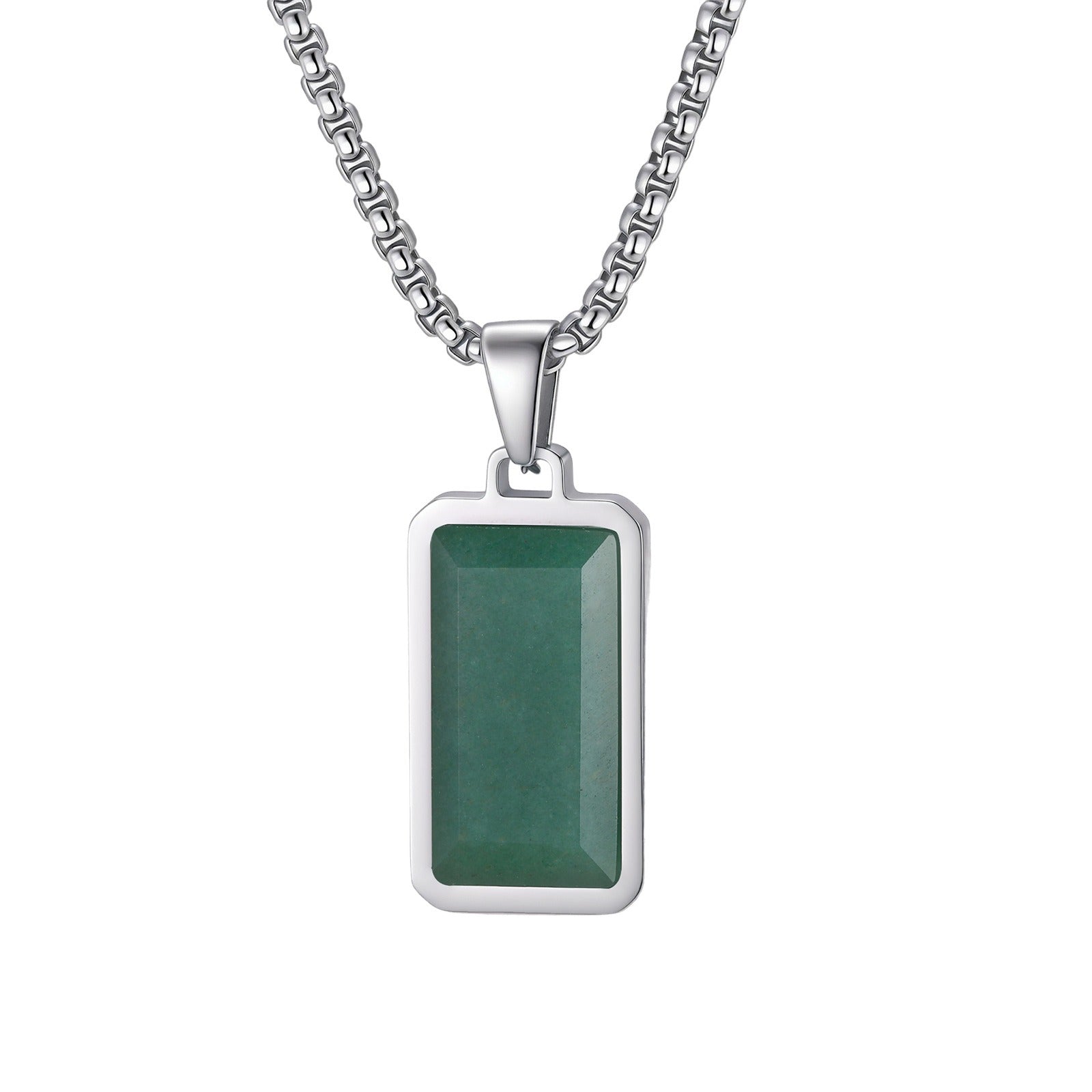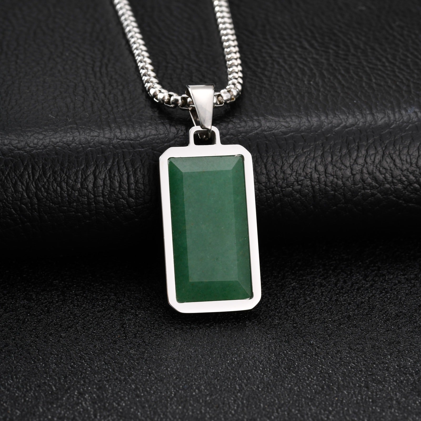 Kemstone Green Stone Pendant Necklace Stainless Steel Rectangular Minimalist Necklace for Men PN-2259