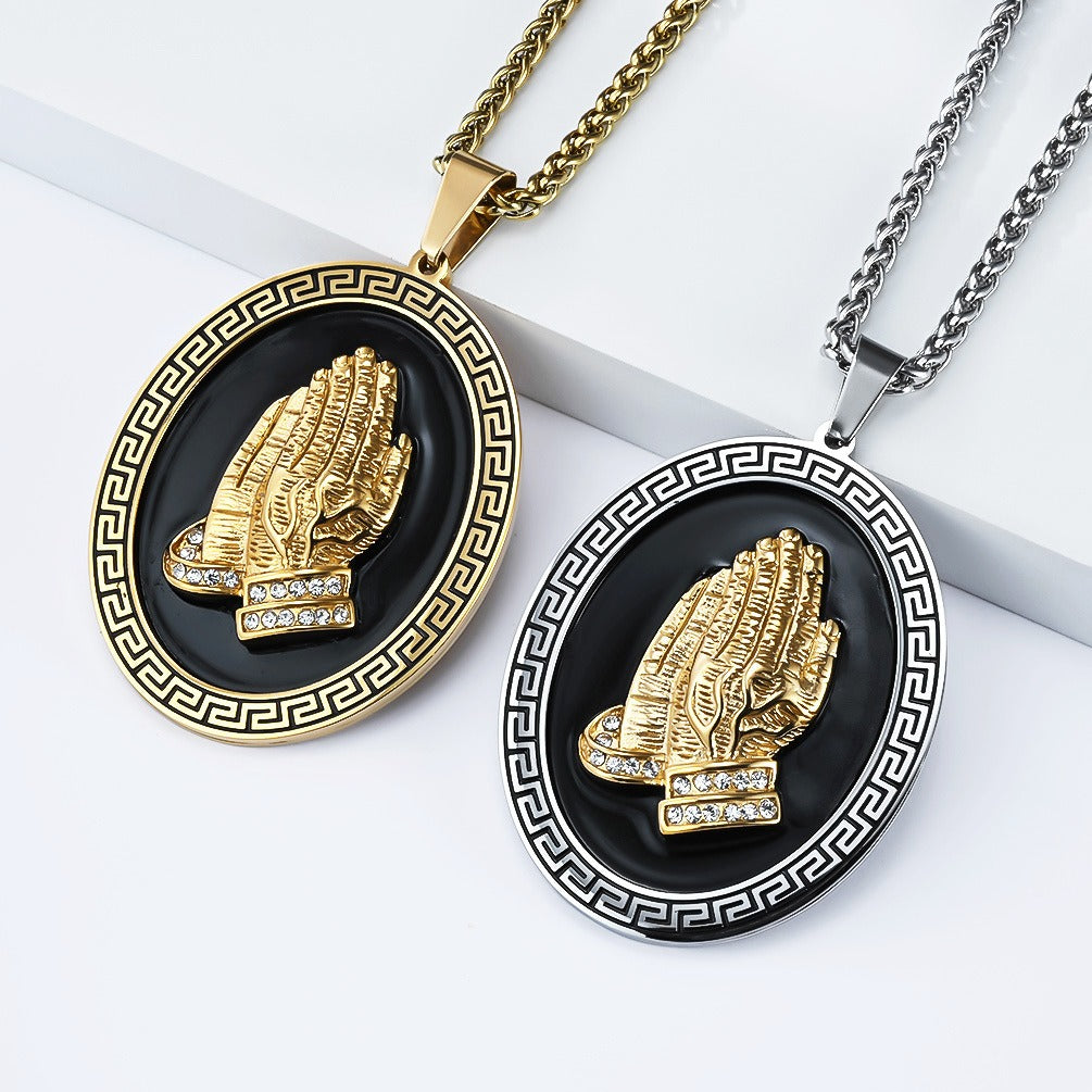 Kemstone Stainless Steel Hand Medallion Pendant Necklace for Men K-PT695