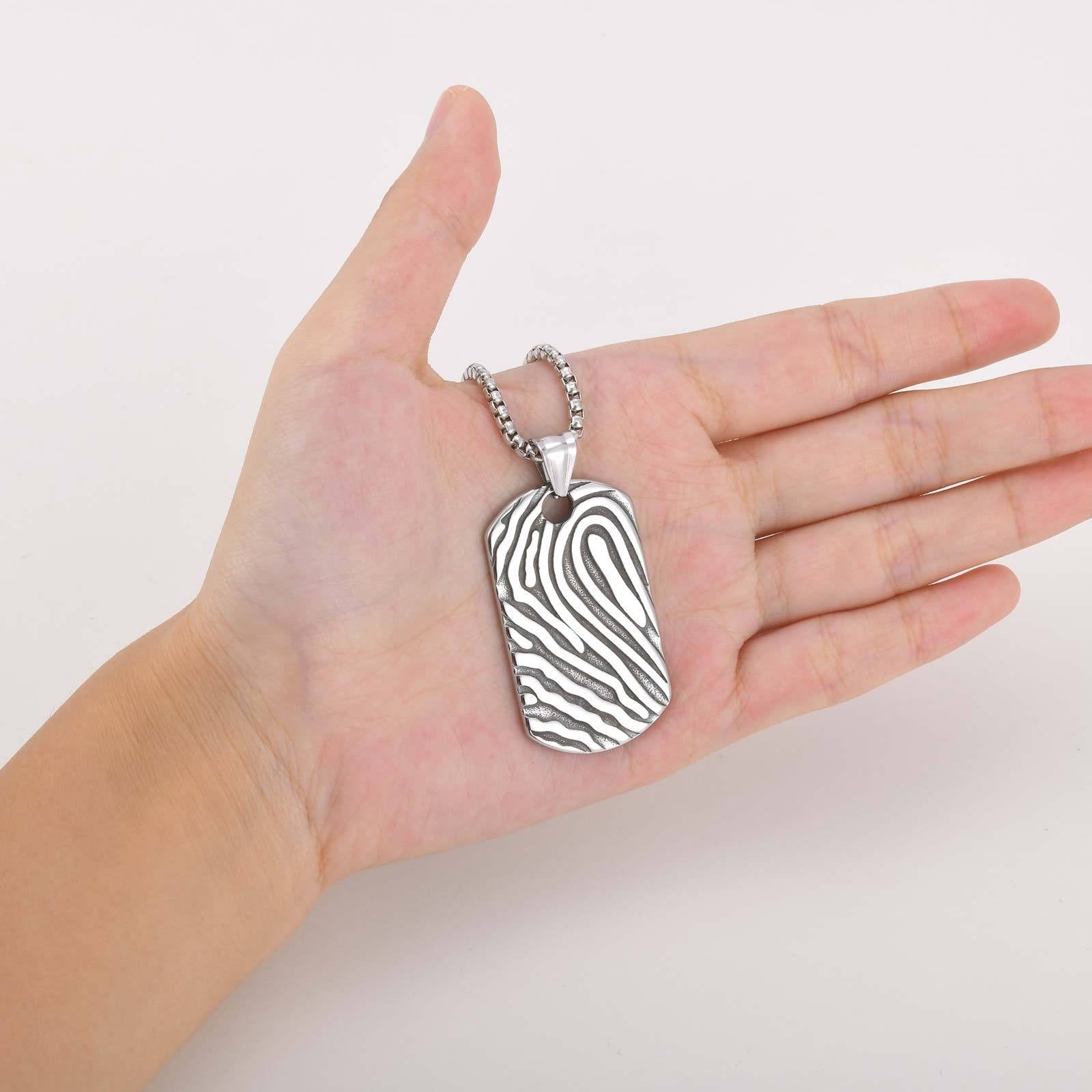 The etched hill pattern offers a distinct visual appeal, making this pendant a unique statement piece for modern men.