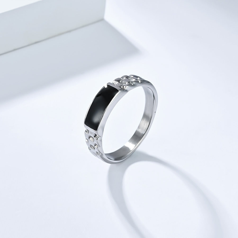 Kemstone Stainless Steel Ring with Dark Center for Men & Women K-R1040