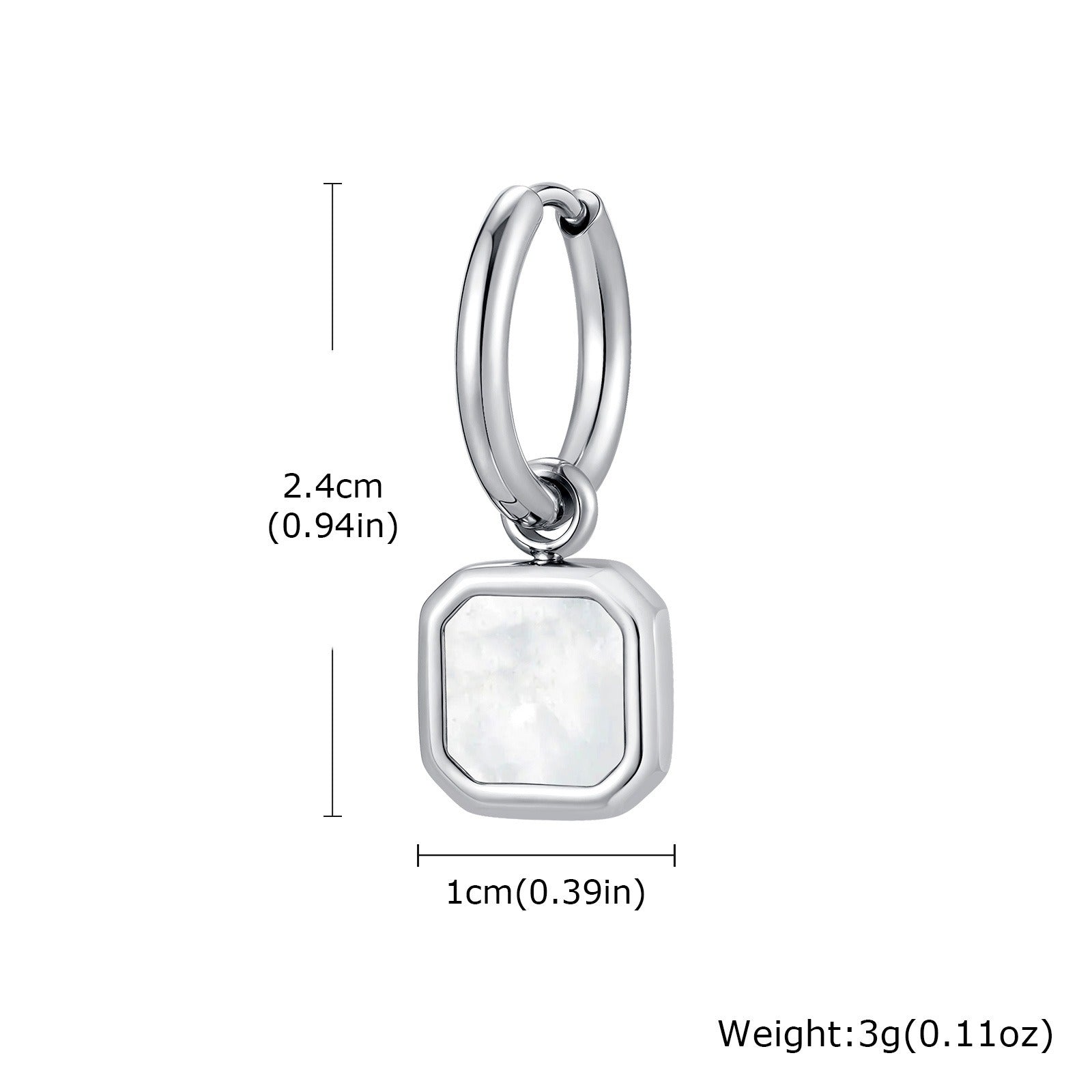 Elevate your look with these stainless steel square drop earrings. Featuring shell, tiger eye, or malachite stones, they bring natural charm and modern balance.