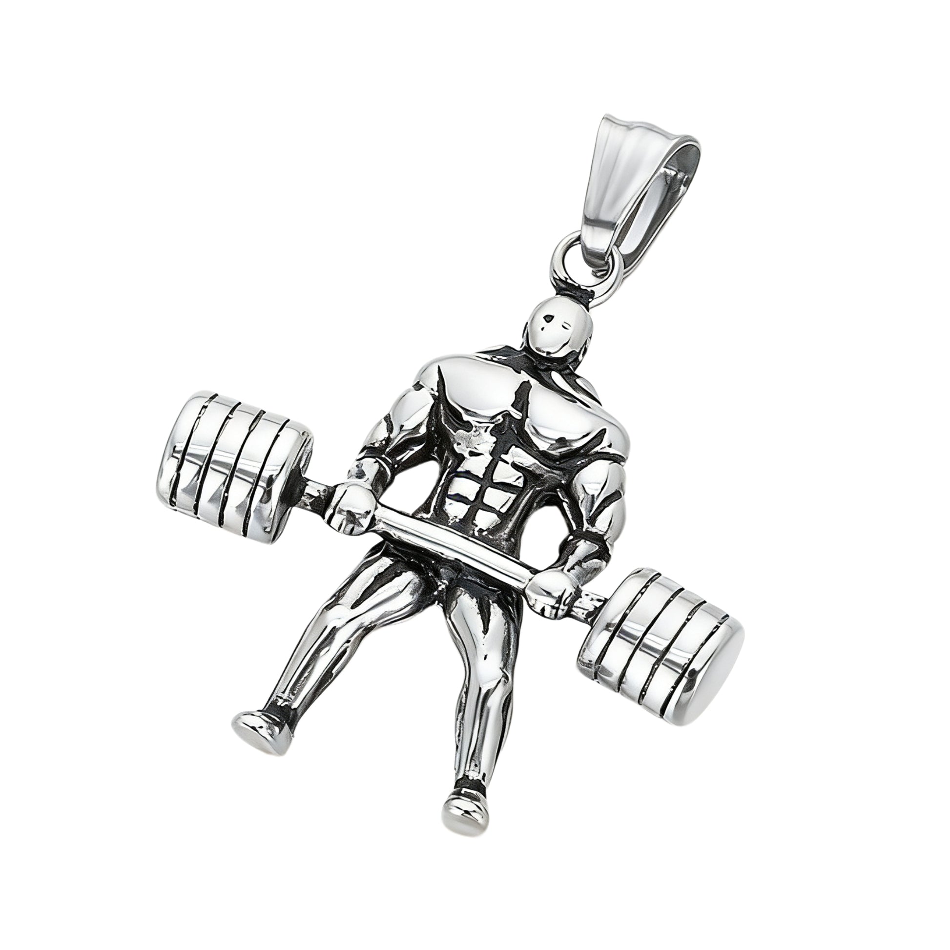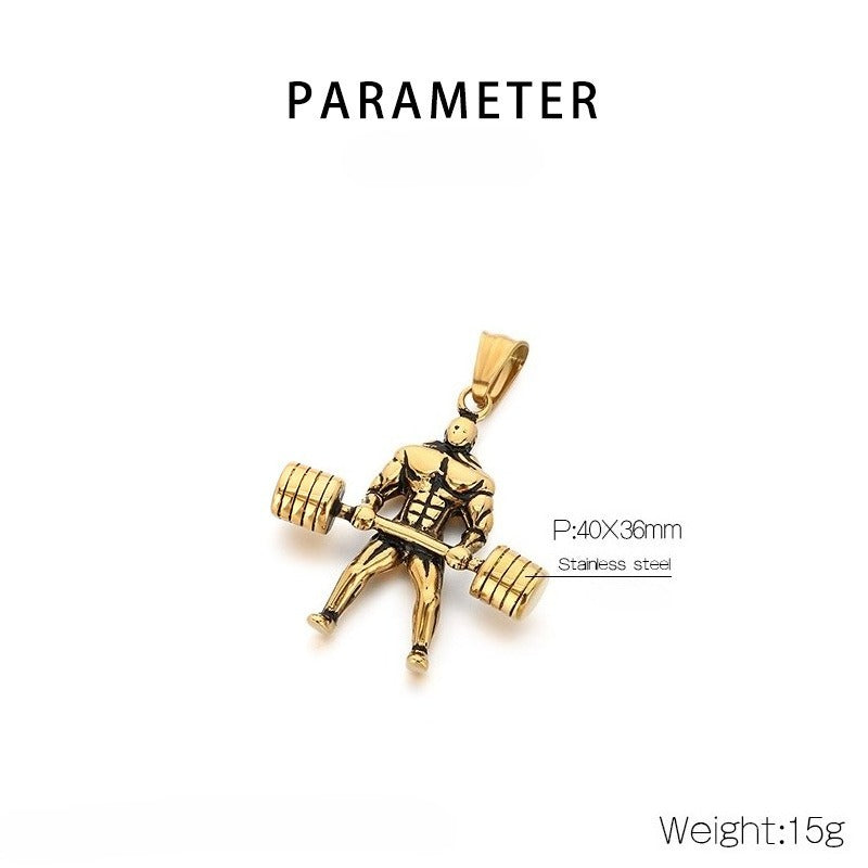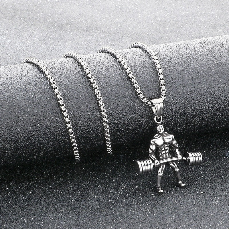 Train with focus in this titanium steel barbell pendant necklace for men. Gym-inspired form, solid structure, and steady daily wear presence define discipline.