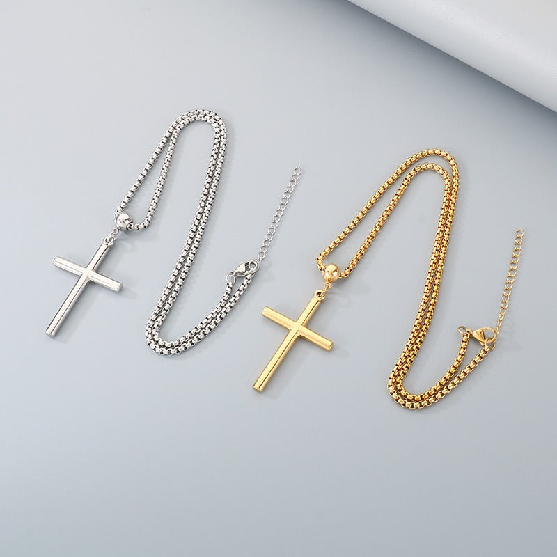 Wear a titanium steel cross pendant necklace built for daily use. Clean shape, balanced size, and solid metal feel create a stable, structured presence.
