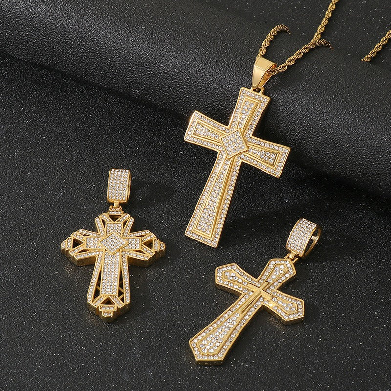 Two-layer pendant fully covered in Cubic Zirconia, symbolizing power, faith, and fearless hip hop energy.
