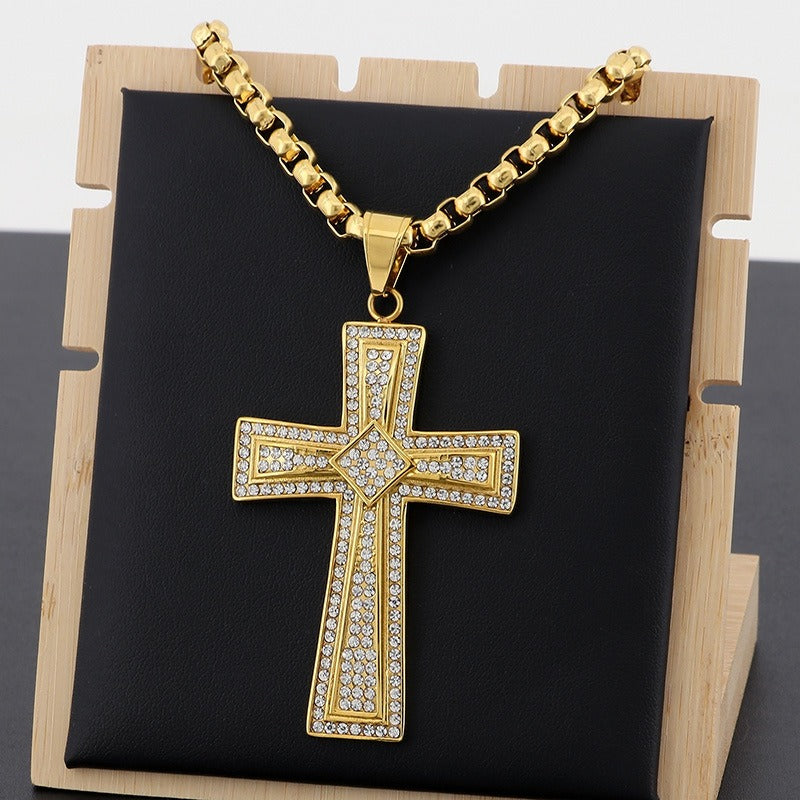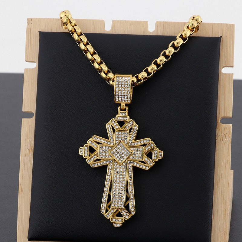 Shine with strength and faith — this double-layer iced out cross necklace features full Cubic Zirconia brilliance and titanium steel power for bold street style.