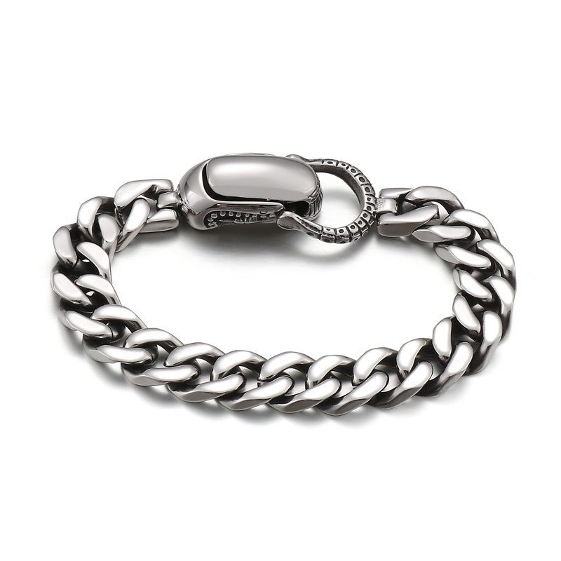 Wear solid presence with this titanium steel Cuban chain bracelet. Heavy links and a polished finish create a bold, stable structure that stays in place all day.