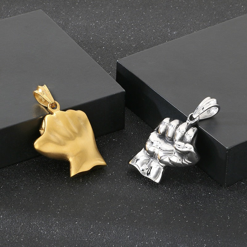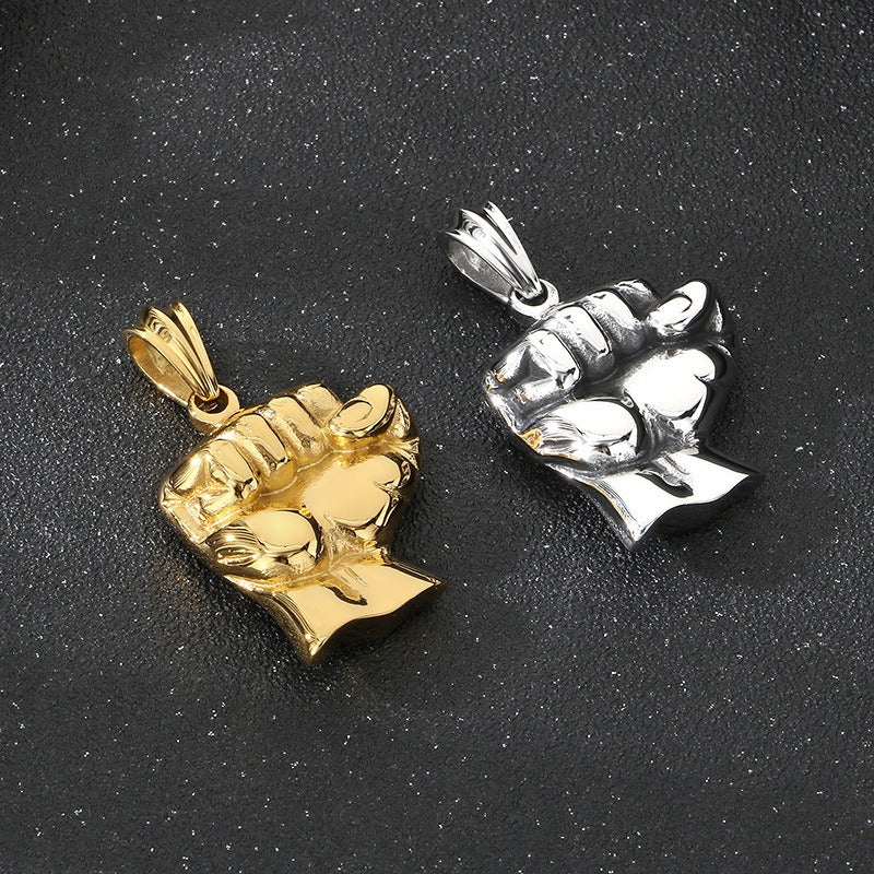 Show your strength with this titanium steel fist pendant necklace. Solid, polished, and powerful — a hip hop piece that defines confidence and determination.