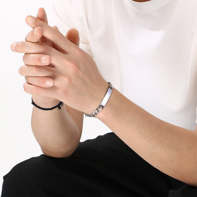 Kemstone ID Bracelet for Men Titanium Steel Cuban Chain Curved Bar KB212145-KFC