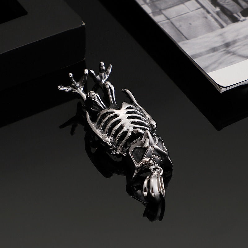 Embrace dark elegance with this titanium steel owl skeleton necklace — a gothic punk symbol of wisdom, mystery, and fearless individuality.