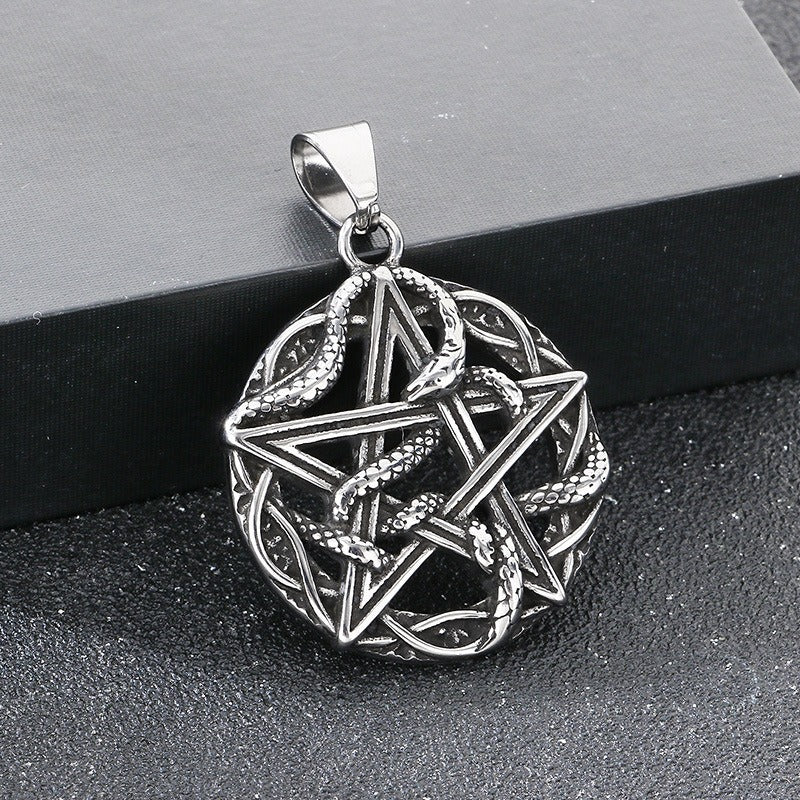 Wear this titanium steel pentagram moon pendant necklace for men to bring structure and presence into daily wear. Circular form and layered geometry keep the look grounded and composed.