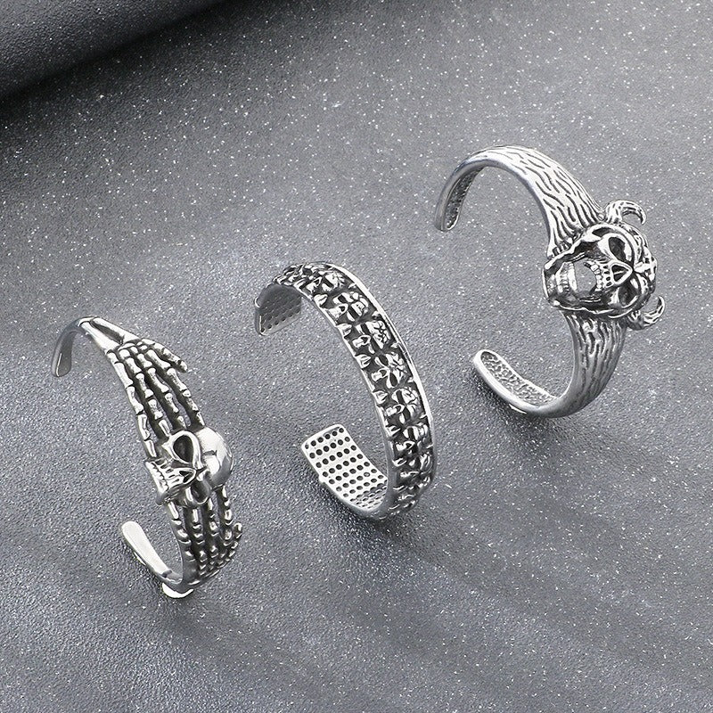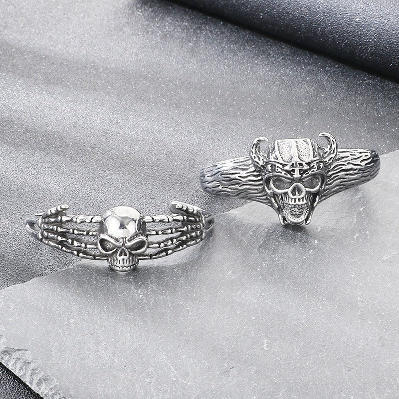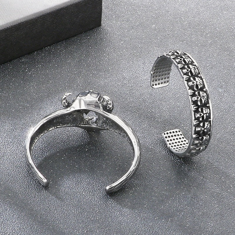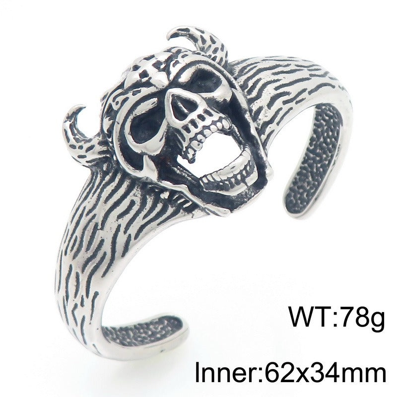 Kemstone Viking Skull Cuff Bracelet Titanium Steel Gothic Open Bracelet for Men KB209286-LU