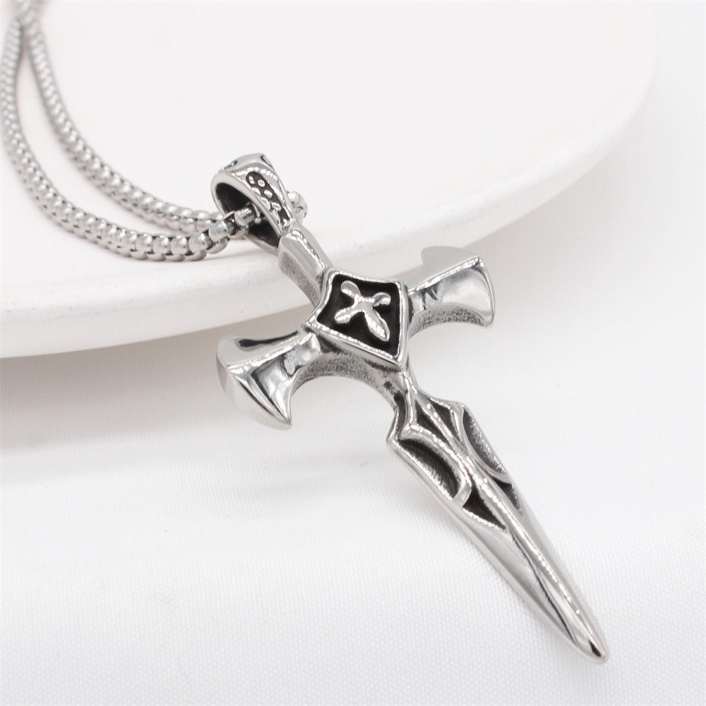 A strong gift choice for men drawn to sword and cross symbols, clean metal structure, and a focused, disciplined style expression.