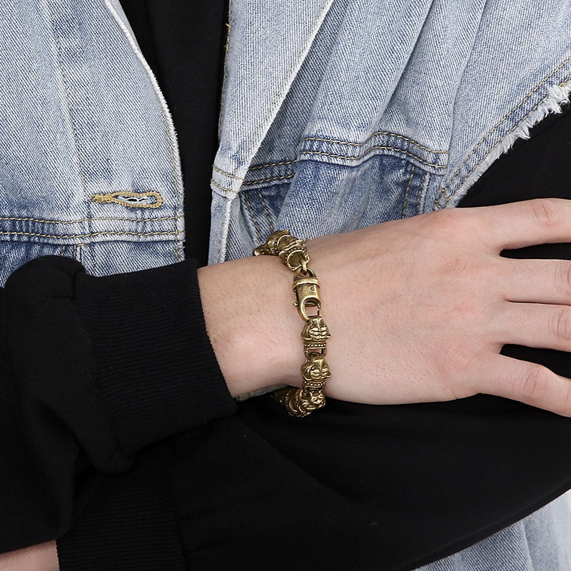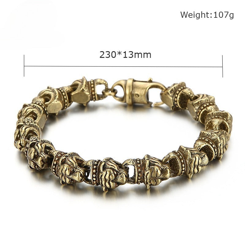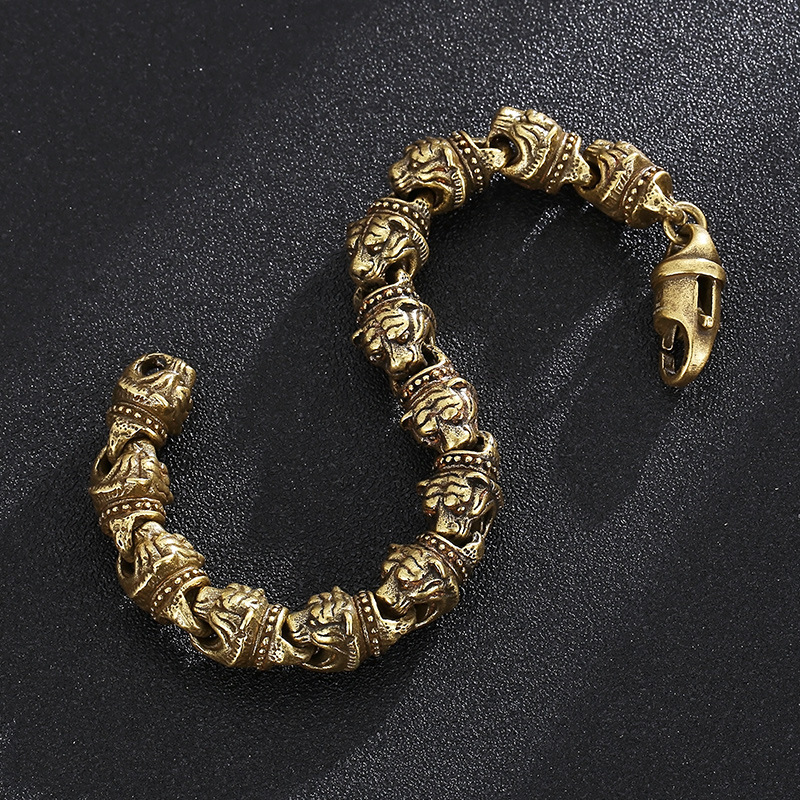 Built with repeated tiger head beads to maintain structure, weight balance, and bold visual impact over time.