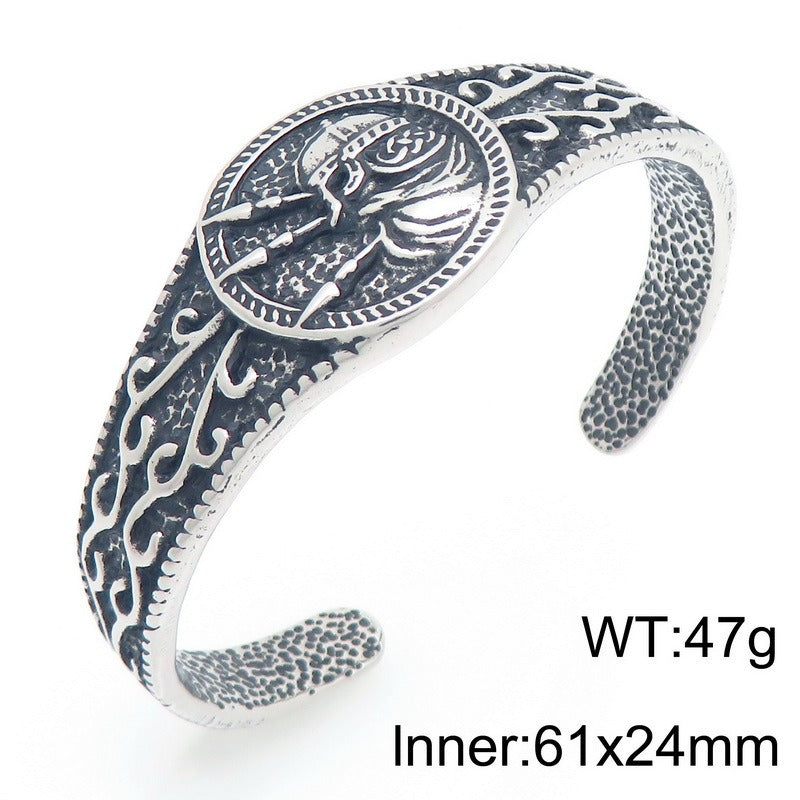 Kemstone Viking Celtic Titanium Steel Cuff Bracelet for Men Vintage Helmet Open Bangle KB209309-LU