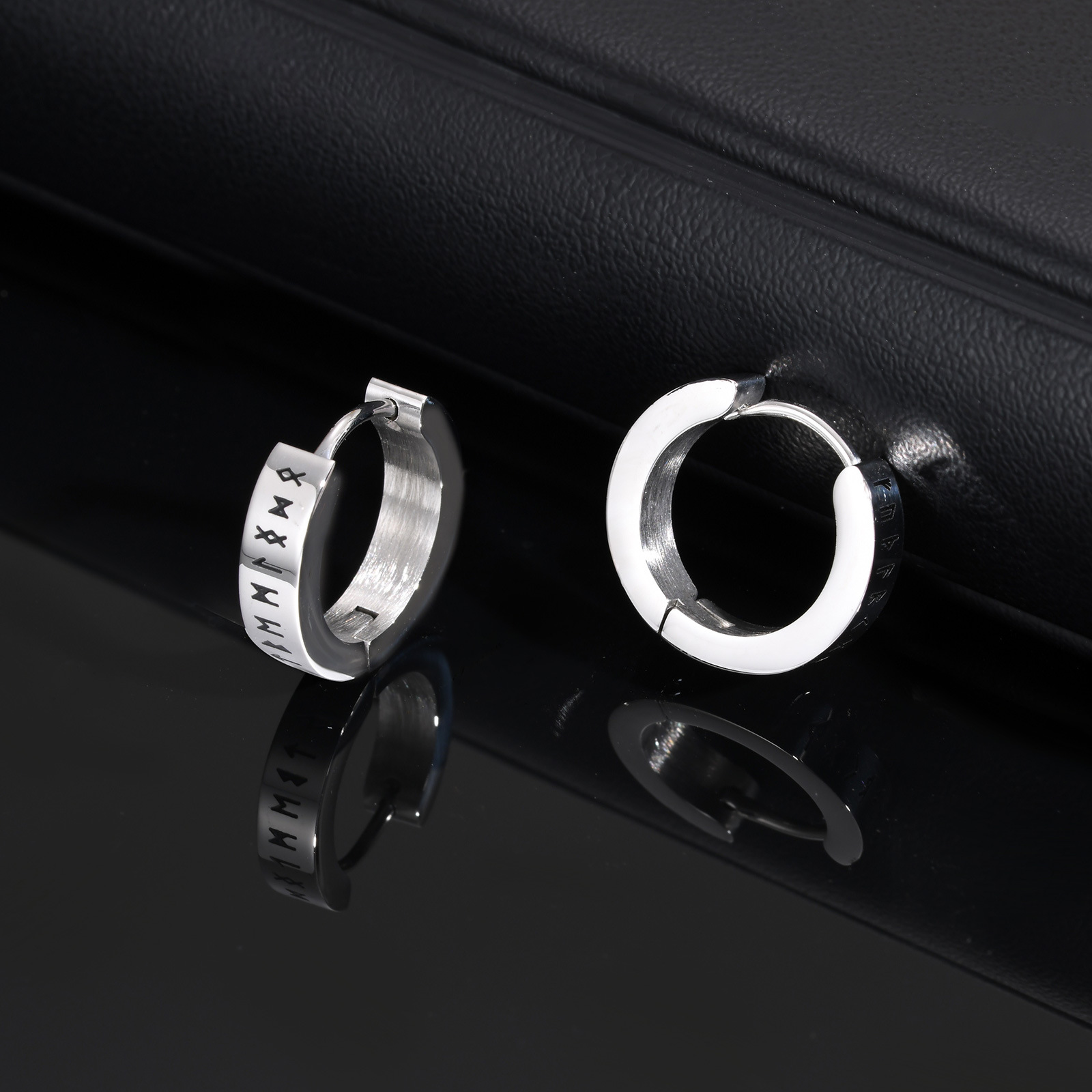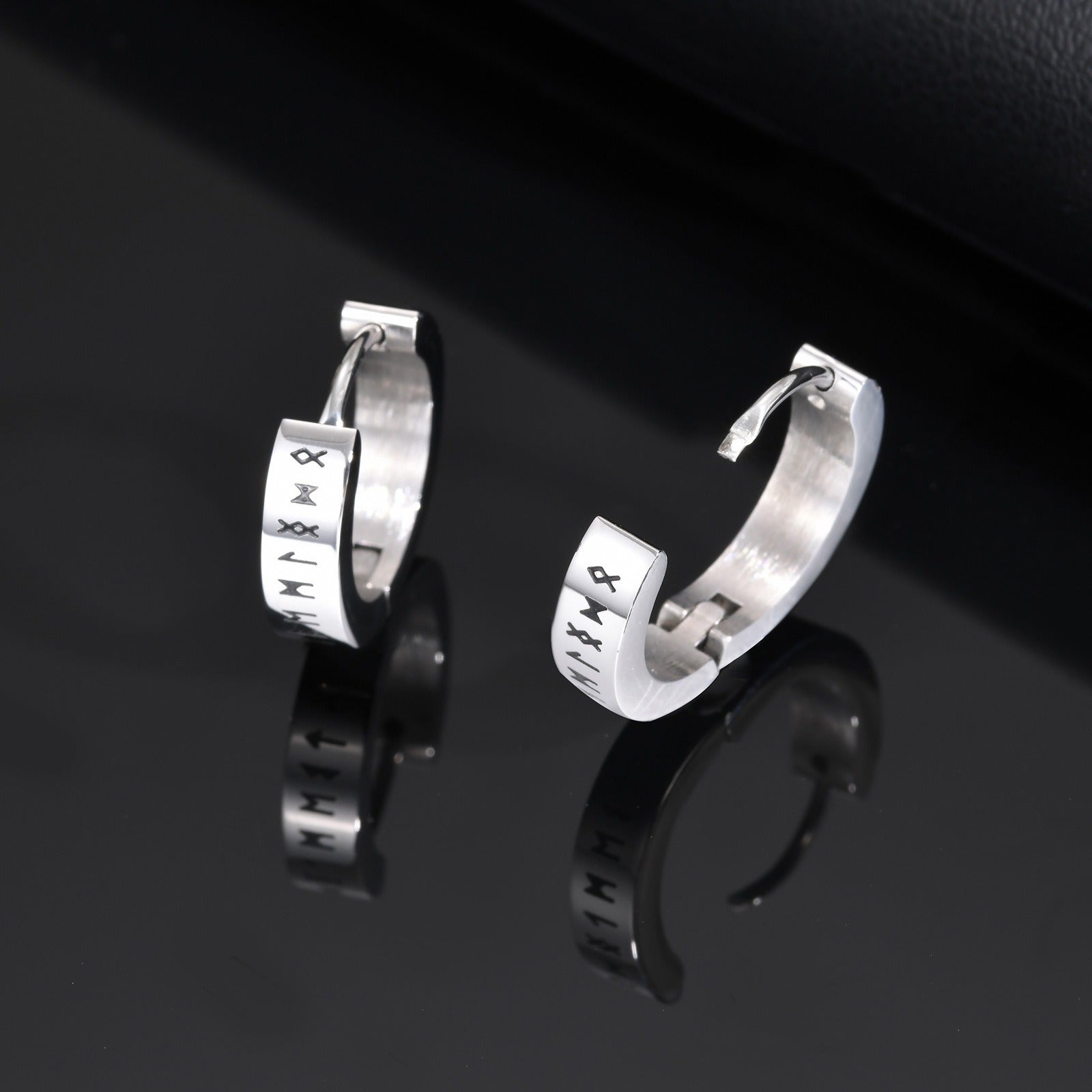 Wear these stainless steel Viking rune hoop earrings as a clean, everyday accent. Designed with minimalist Nordic lines, they sit comfortably and integrate naturally into modern men’s styling.
