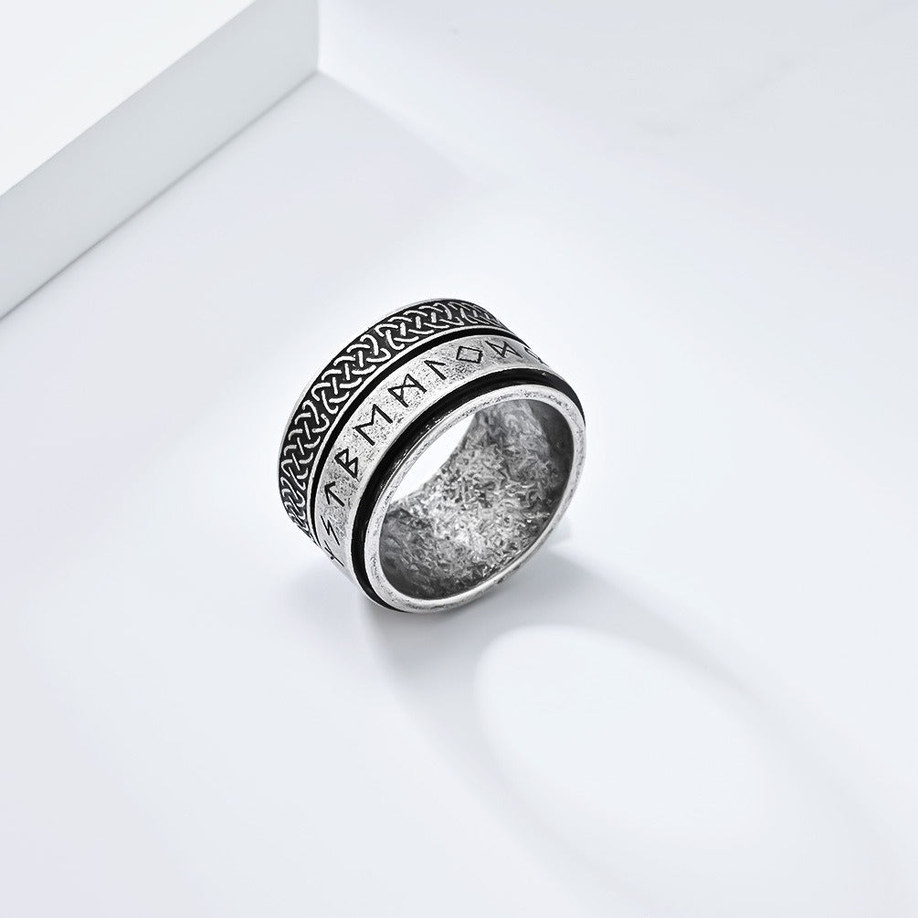 Embrace calm and courage with this stainless steel Viking rune spinner ring. The rotating Celtic band relieves stress while symbolizing focus, balance, and strength.