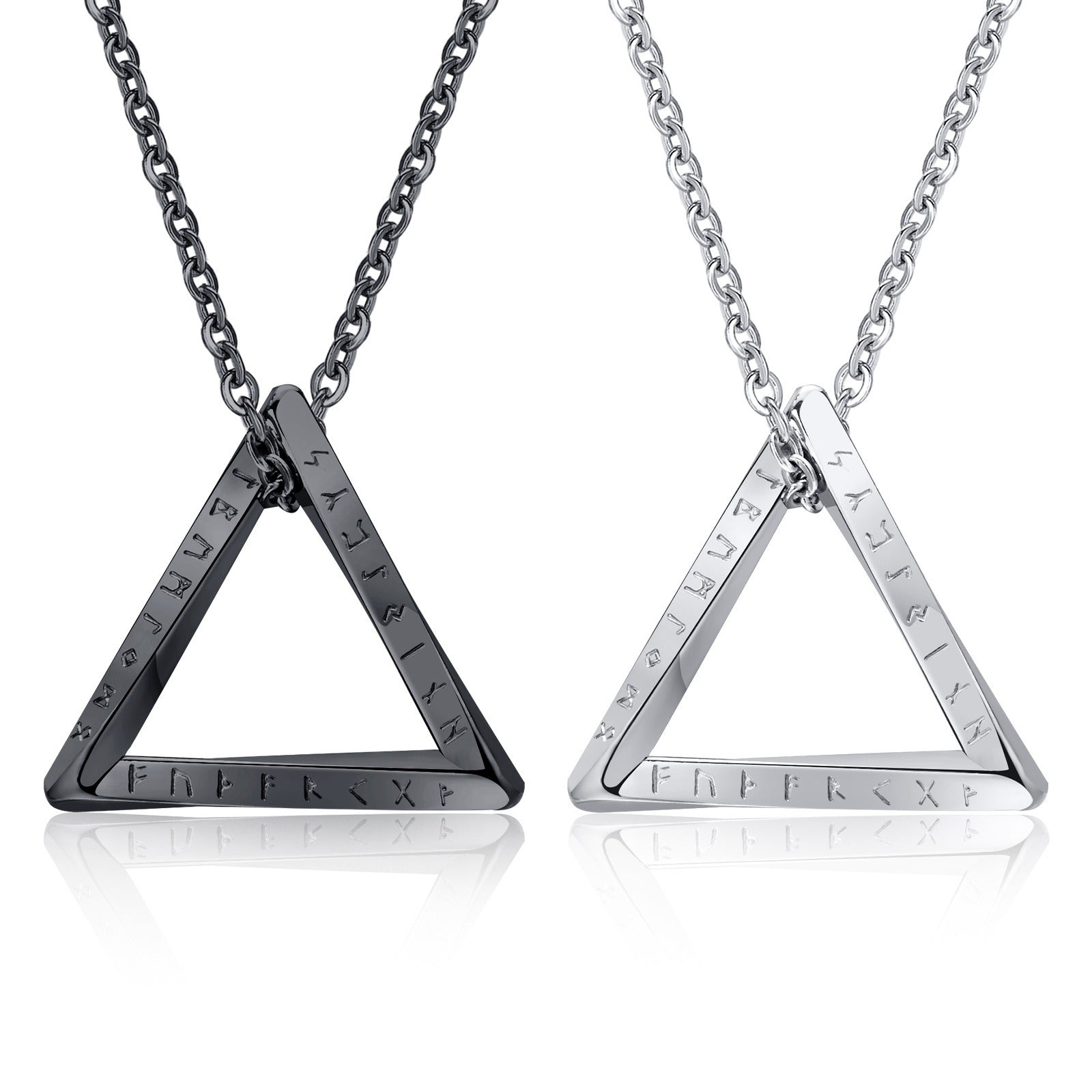 Kemstone Viking Runes Triangle Pendant Necklace – Stainless Steel Nordic Symbol Jewelry for Men Silver & Black PN-1707