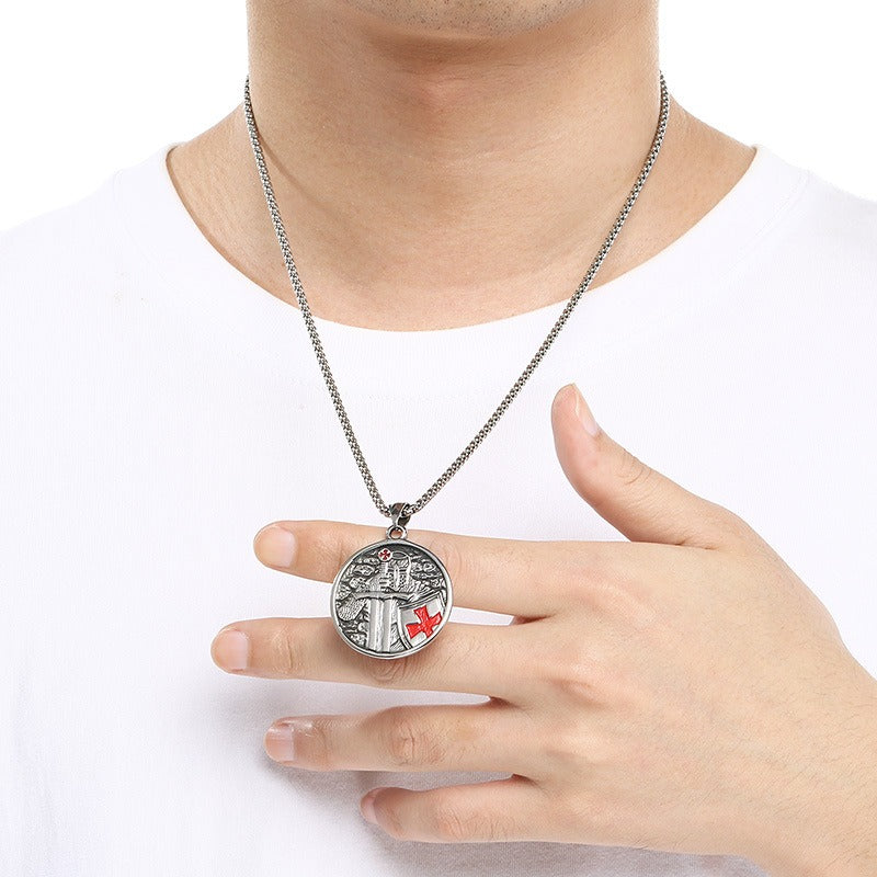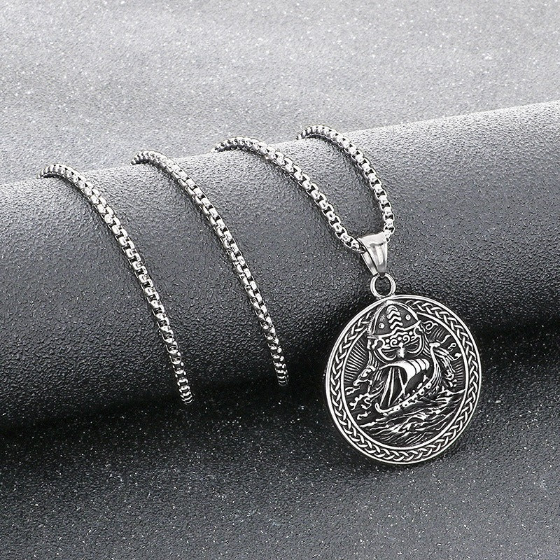 Wear a titanium steel pendant inspired by Norse warriors and medieval emblems. Deep relief, balanced weight, and calm metal presence sit steady on the chest for daily focus.