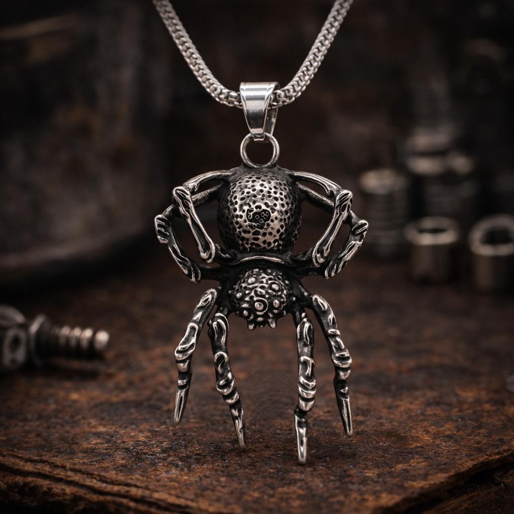 Wear dark structure with this titanium steel spider pendant necklace for men. Sculpted legs and oxidized texture create a steady visual focus that hangs cleanly with street-ready attitude.