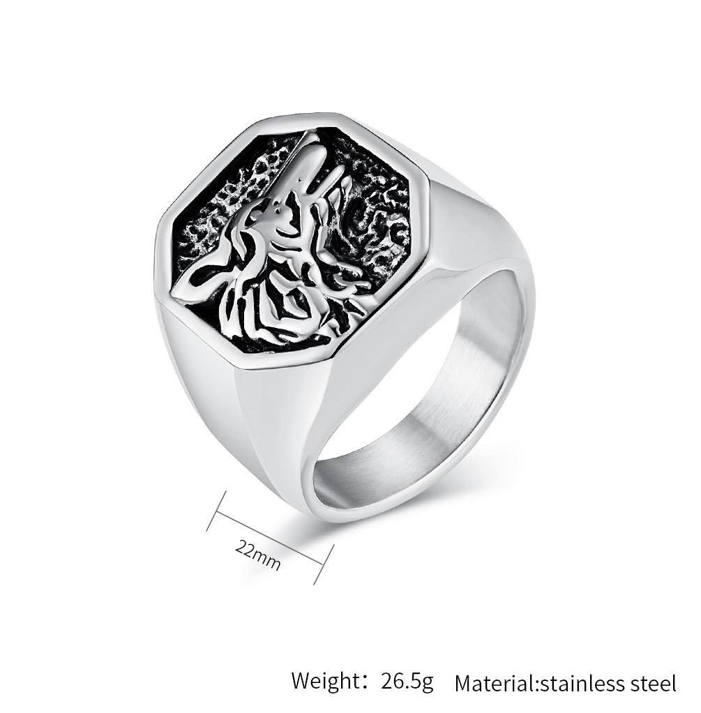 Kemstone Vintage Wolf Head Stainless Steel Ring for Men K-R832
